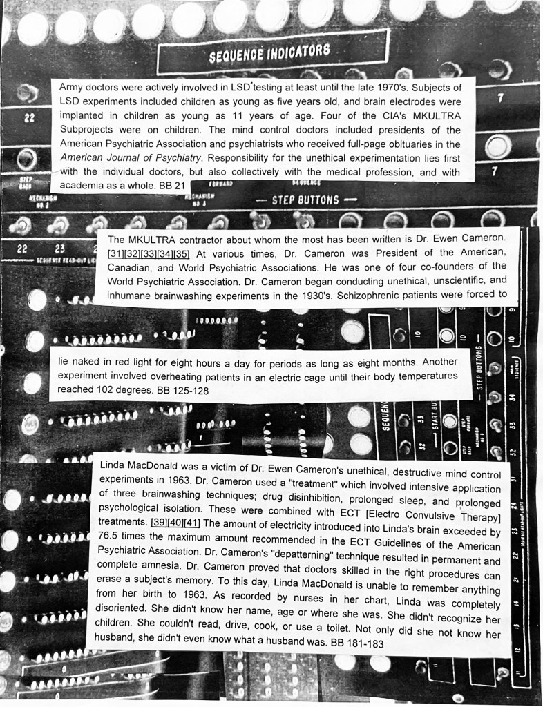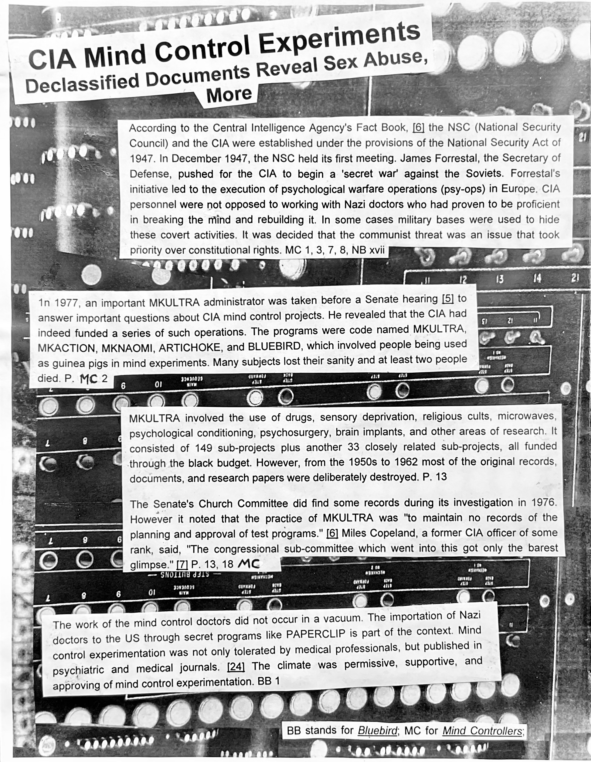 – excerpts from three books: Bluebird by Colin Ross, MD; Mind Controllers by Armenian Victorian; and A Nation Betrayed by mind control survivor Carol Rutz.