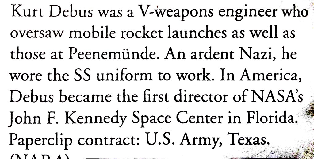 “Operation Paperclip was a postwar U.S. intelligence program that brought German scientists to America under secret military contracts.” “‘I’m mad on technology,’ Adolf Hitler told his inner circle, and in the aftermath of the German surrender more than 1600 of Hitler’s technologists would become America’s own.” – Operation Paperclip by Annie Jacobsen